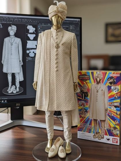 We are more than just a store; we are a one-stop destination for all your menswear needs. This collection gives you a behind-the-scenes look at our showrooms in Narela and Pitampura, our vast selection of exclusive fabrics, and our legacy of styling generations. Come experience our personalized service and find your perfect outfit.