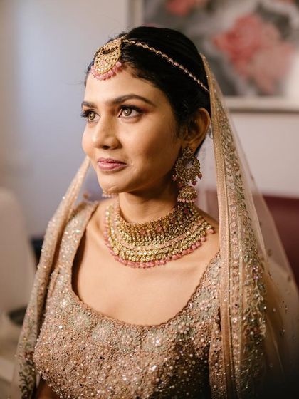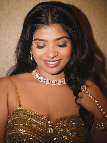 I do bridal makeup that matches your skin, style, and tradition, with lightweight products and full packages including hair and draping.