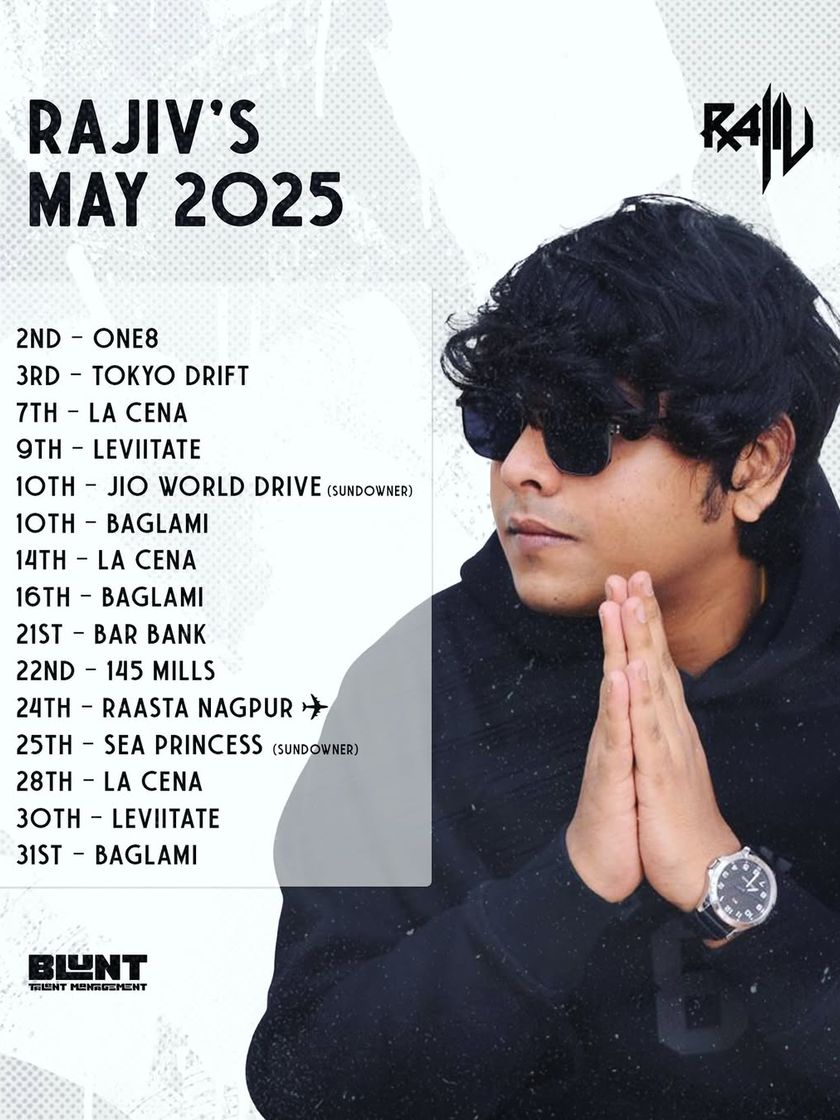 I am constantly on the road, performing 15 or more gigs every month in cities all across India. This is a look at my packed schedule, which shows my high demand and experience playing for diverse crowds in Mumbai, Delhi, Goa, Bengaluru, Nagpur, and beyond.