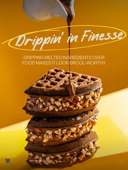 We love action - the sizzle, the pour, the drip. Texture matters, so we build layers with ingredients and props. Lighting is huge for us, whether it’s bright and fun or moody and dramatic. Sometimes we go wild with smoke or fire for that extra punch.