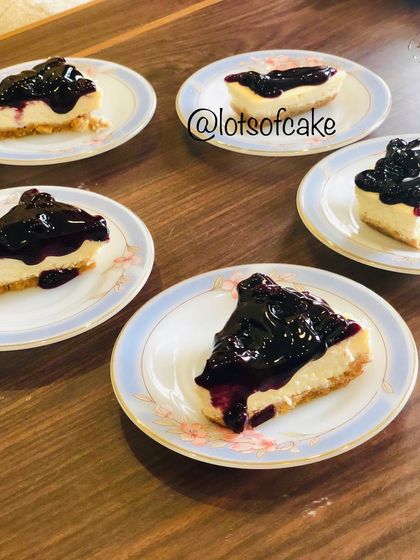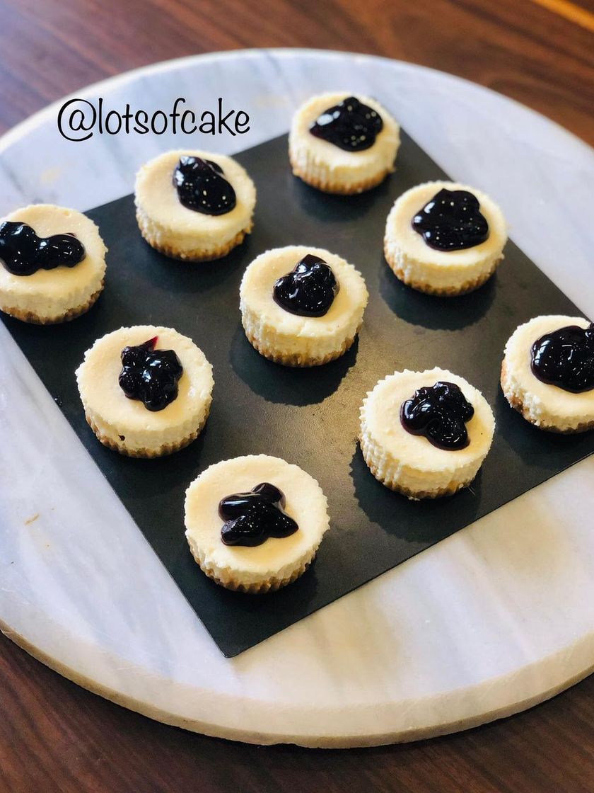 I offer my cheesecakes in two ways: as generous, classic slices perfect for dessert, or as cute, bite-sized minis that are great for parties. Both feature a buttery biscuit base and my signature creamy filling, often topped with homemade fruit compote.