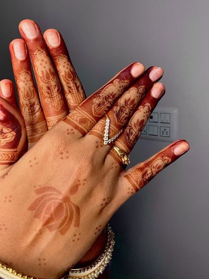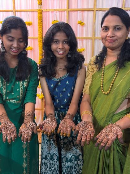Hey, Geetha here from Lotus Mehendi Arts. Science geek turned mehendi lover - yeah, bit odd combo! I mix my biochemistry mind with art, so you won’t find any chemical stuff in my cones. Full organic, safe for everyone, especially moms-to-be. I’ve been at this for 12 years, started out in tiny corners with bad lighting, but the real joy’s always been seeing people go from 'full confusion alli idde' (total confusion) to happy smiles. That connection? Can’t beat it.