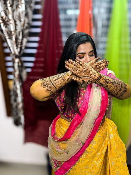 Hey, Geetha here from Lotus Mehendi Arts. Science geek turned mehendi lover - yeah, bit odd combo! I mix my biochemistry mind with art, so you won’t find any chemical stuff in my cones. Full organic, safe for everyone, especially moms-to-be. I’ve been at this for 12 years, started out in tiny corners with bad lighting, but the real joy’s always been seeing people go from 'full confusion alli idde' (total confusion) to happy smiles. That connection? Can’t beat it.