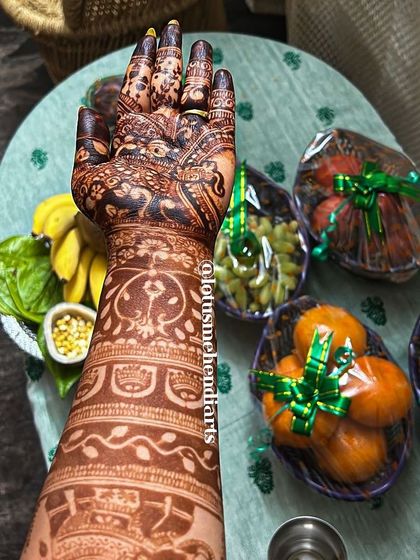Hey, Geetha here from Lotus Mehendi Arts. Science geek turned mehendi lover - yeah, bit odd combo! I mix my biochemistry mind with art, so you won’t find any chemical stuff in my cones. Full organic, safe for everyone, especially moms-to-be. I’ve been at this for 12 years, started out in tiny corners with bad lighting, but the real joy’s always been seeing people go from 'full confusion alli idde' (total confusion) to happy smiles. That connection? Can’t beat it.