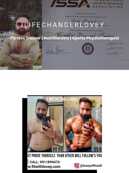 I’m Lovey, fitness trainer, nutritionist, sports physio - 10+ years in the game. For me, this isn’t just work, it’s my whole life. I’ve been that guy who changed from 80kg to shredded 65kg in just 3 months. You can do it too - not just body, mind also matters. Karma, faith, Shiva, Ram... that’s my vibe. Sometimes it’s lonely, but I’m enough. Past is gone, present is what counts. Challenge your limits, don’t limit your challenges.