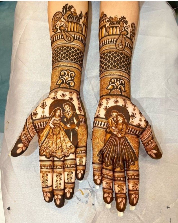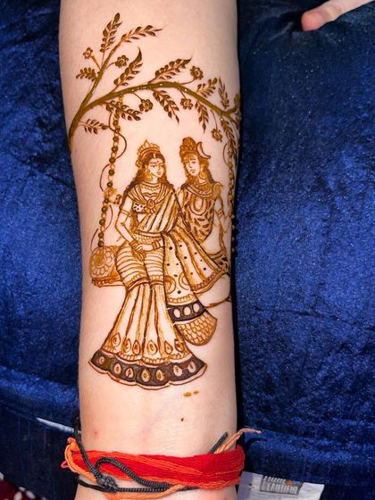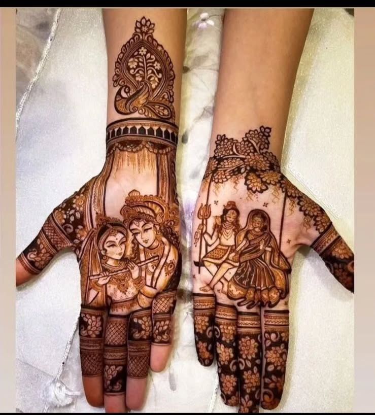 For those who want to add a spiritual touch to their mehndi, I create detailed portraits and scenes of gods and goddesses. Popular designs include Radha-Krishna, Shiv-Parvati, and Lord Ganesha.