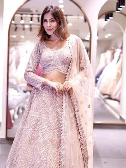 We offer bridal lehengas and gowns in classic and modern styles, custom options, and outfits for all wedding events, with try-on available in-store or by video call.