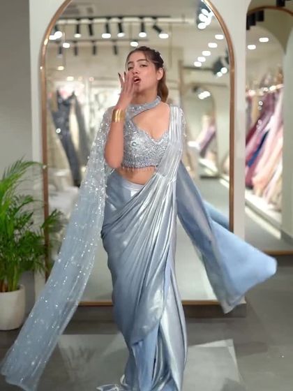 All the elegance of a saree with none of the stress. My collection of pre-draped sarees is perfect for parties, cocktails, and any event where you want to look glamorous in minutes. I offer them in shimmering fabrics, bold colors, and modern styles with embellished blouses.