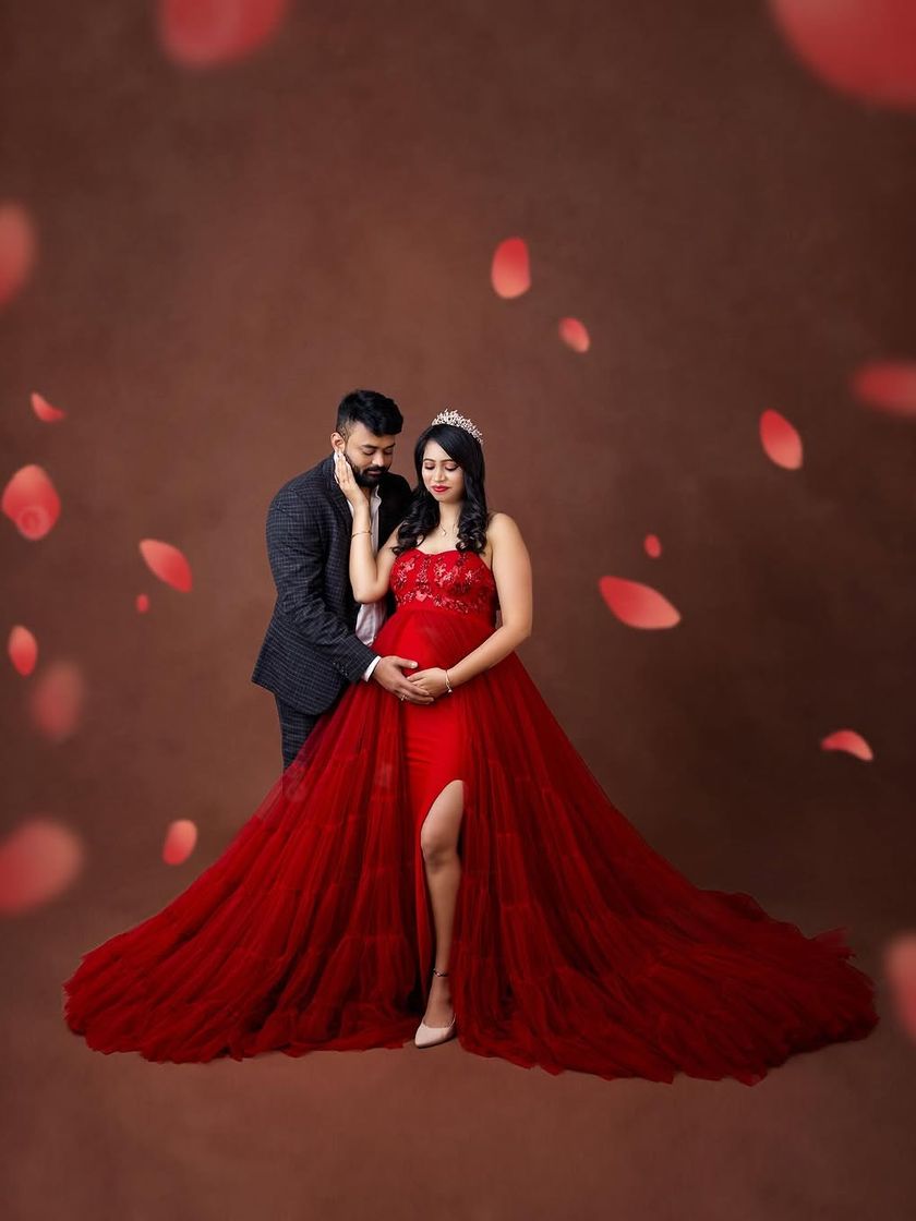 Celebrate your culture with a maternity session that incorporates traditional attire. I create painterly, fine-art portraits that honor your family's roots, often using rich colors in beautiful sarees and symbolic elements.