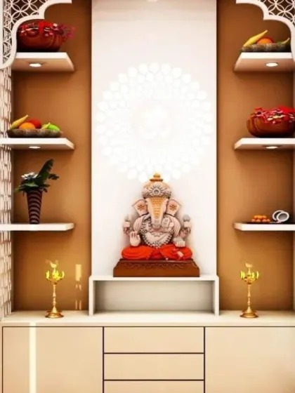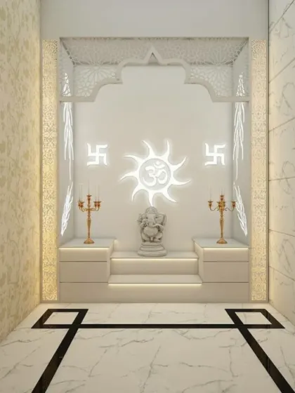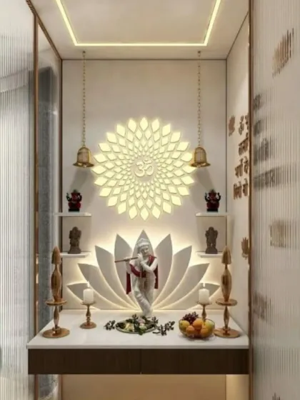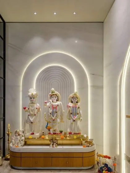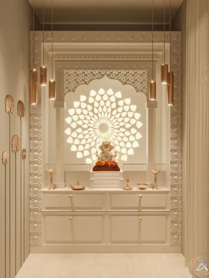 We design mandir and pooja units with custom lighting, smart storage, and materials like marble and wood, tailored to your rituals and home space.