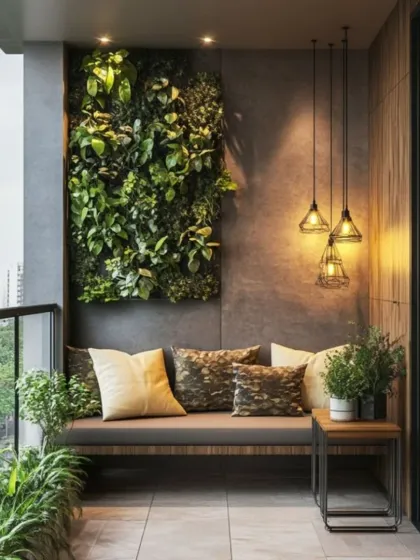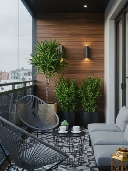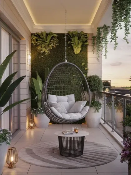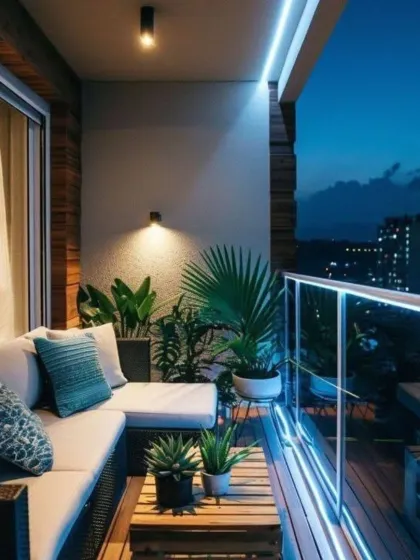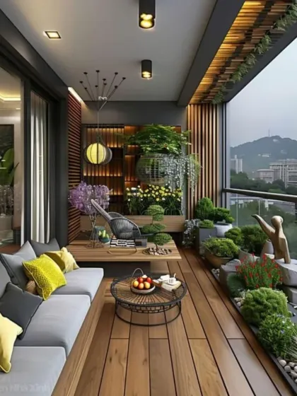 We design balconies and terraces with weatherproof furniture, smart plant setups, and custom lighting to make the space comfortable and usable all year round, no matter the size.