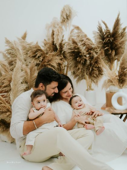 I do family photo sessions in studio or outdoors across Delhi NCR, include props and outfit help, and give you both edited and all raw images, with pets and all family members welcome.