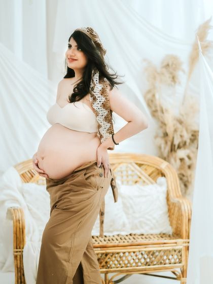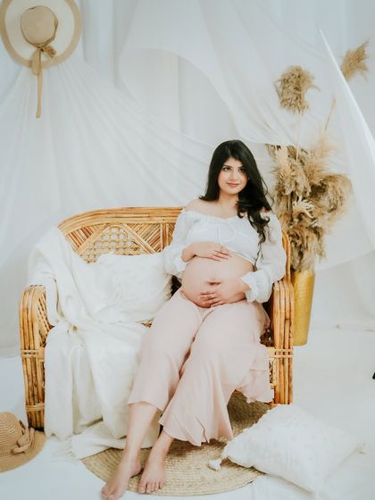 I do maternity photoshoots in studio or outdoors around Delhi NCR, with options for wardrobe, props, and family inclusion, focusing on real moments and your comfort.