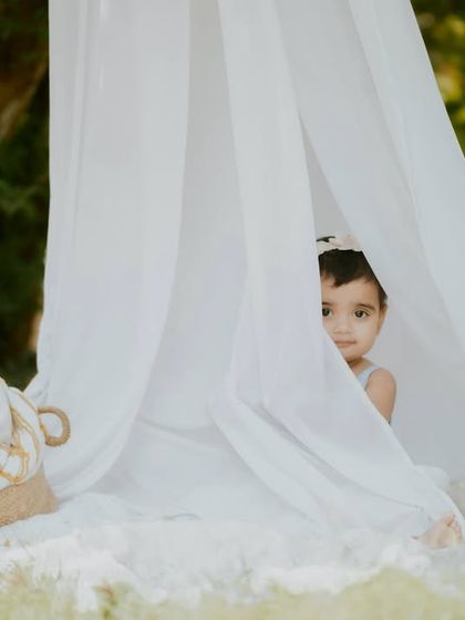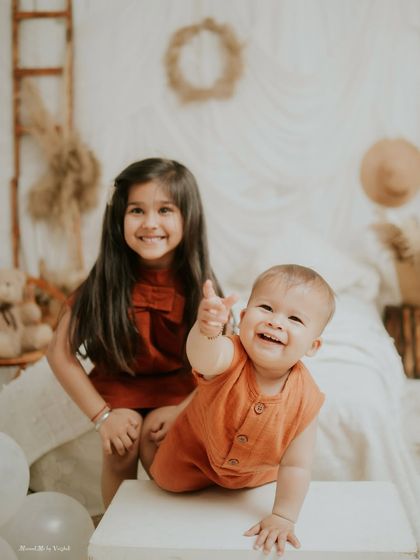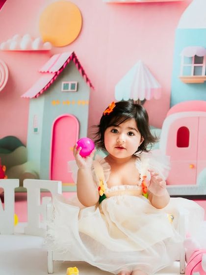 I do baby and kids photoshoots in my studio or outdoors in Delhi NCR, handle all props and outfits, offer custom themes, and let you pick and keep your favorite edited images.