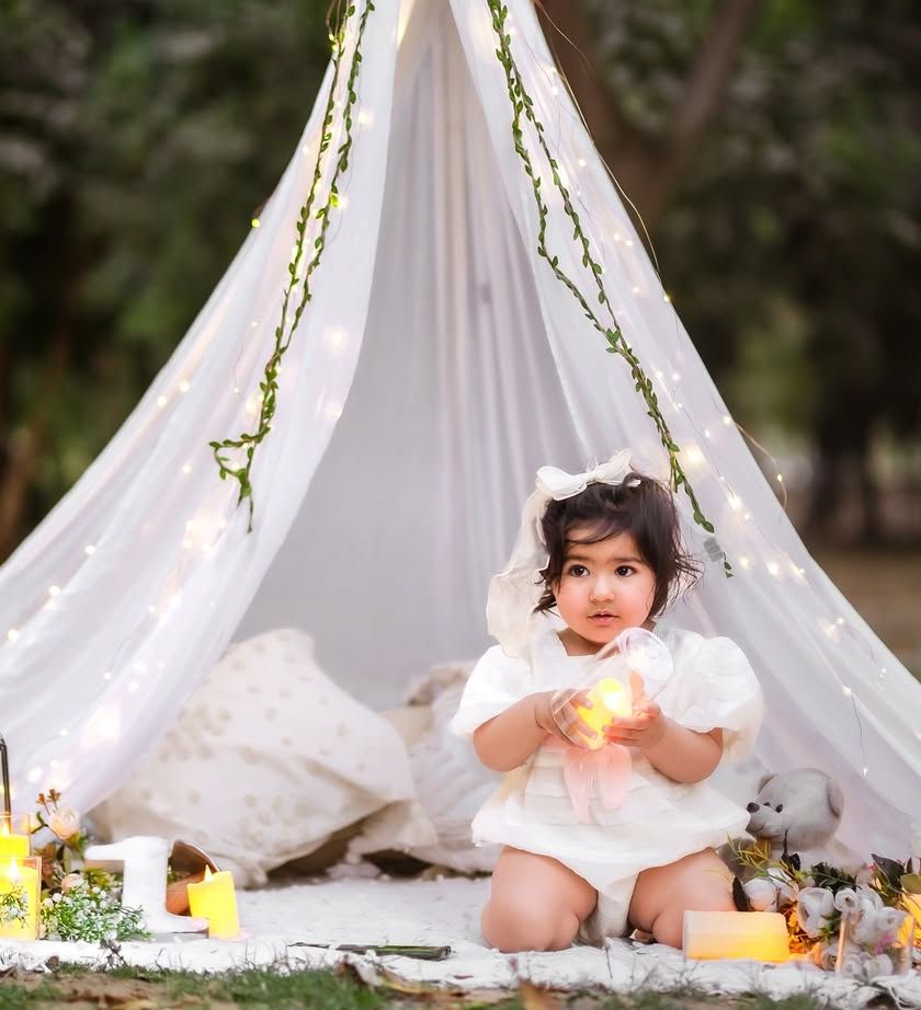 Celebrate Janmashtami by transforming your little one into a divine Ladoogopal, Kanha, or Radha Rani. I create beautiful, culturally rich setups with traditional props like matkis and peacock feathers, capturing the playful and divine spirit of the festival for you to cherish.