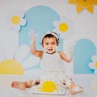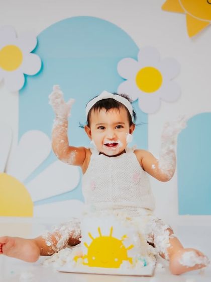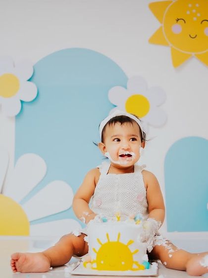 Let's get messy. I provide the theme, props, and a basic cake so your little one can dive right in for their first taste of birthday fun. This is where we capture the pure, unfiltered joy of turning one, from tentative first touches to full-on frosting chaos.