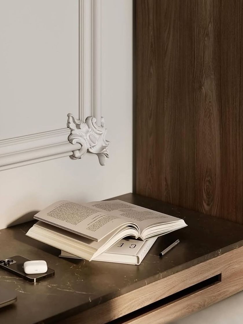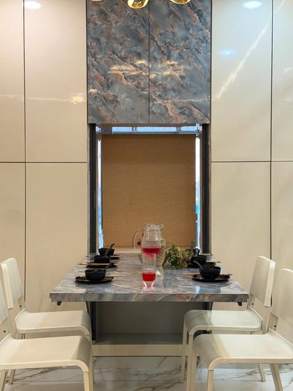 I design living areas that are the heart of the home, combining comfort with statement-making style. This collection showcases custom TV units with features like marble panels and backlighting, unique wall textures, and innovative, space-saving dining solutions for modern living.