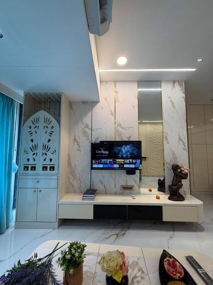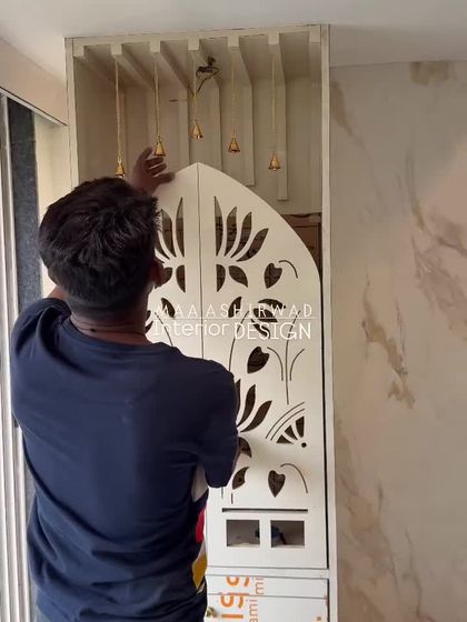 I believe the entrance sets the tone for the entire home, and a pooja unit brings in a sense of peace. I design custom entrances with statement lighting and nameplates, as well as serene mandirs with features like intricate jaali work, bells, and backlighting.