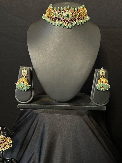 Sometimes, all you need is a statement choker to complete your look. I offer a wide variety of chokers for rent, from traditional temple and kemp designs to modern Kundan and diamond-look pieces. You can rent them individually for smaller functions or to pair with a haaram you already own.