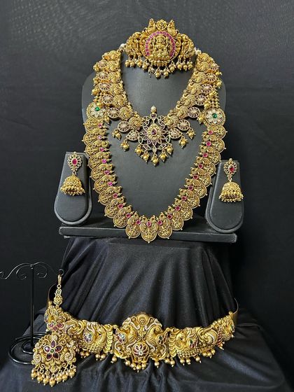 This is a handpicked selection of our most loved jewellery sets. It gives you a glimpse of the variety I offer, from grand traditional pieces for your muhurtham to glamorous modern sets for your reception. Each piece is chosen to make you the star of your special day.