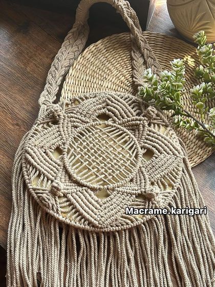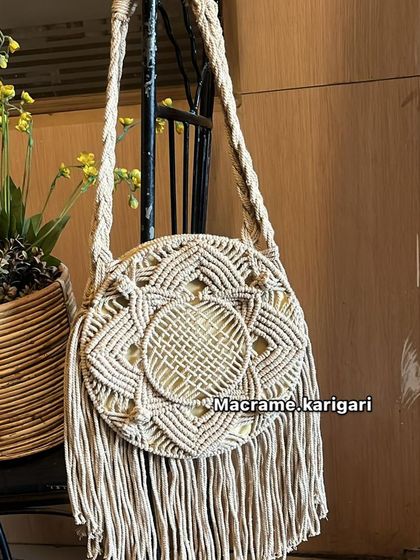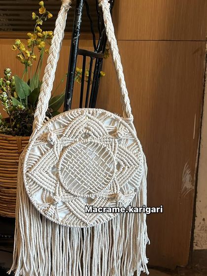 We create handcrafted macrame and crochet products including bags, cushion covers, keychains, toys, and decorative items like wall hangings and plant hangers. Each piece is made with eco-friendly materials using traditional knotting techniques.