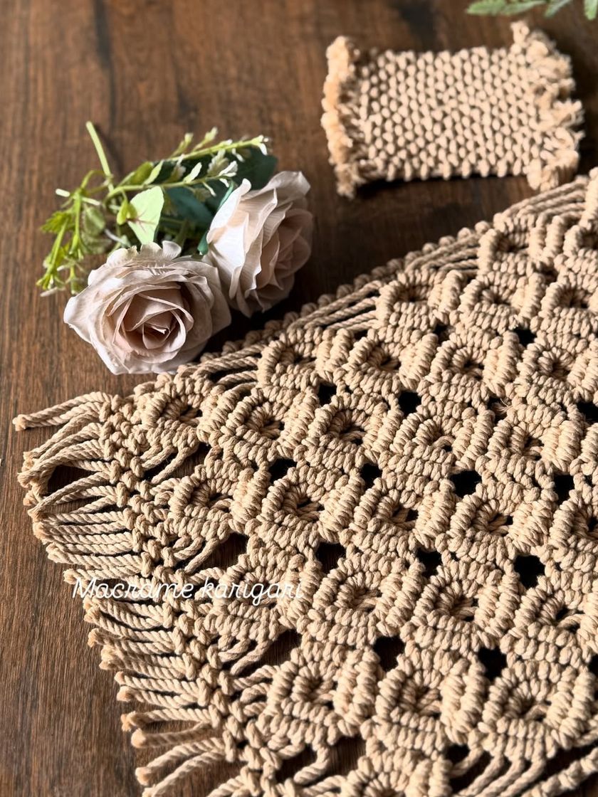 Add a handmade touch to your dining table with our macramé and crochet decor. We offer customizable placemats, napkin rings, and our popular Sunflower coaster sets, all crafted from eco-friendly cotton to make your meals feel special.