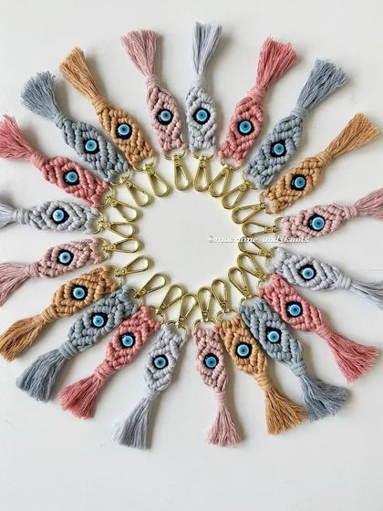 These are my most popular items for bulk gifting and party favors. I offer a variety of designs, including colorful rainbows, protective evil eyes, and personalized name keychains, all knotted by hand to make your event memorable.