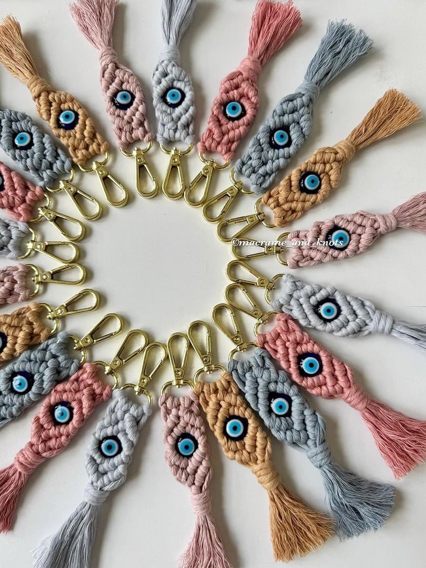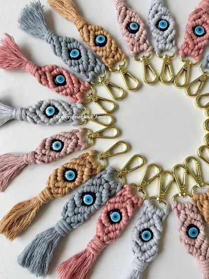 I love making these little pieces of art to carry with you. From the popular evil eye designs to vibrant rainbows, each keychain is knotted by hand and can be customized with your favorite colors. They are perfect as small, thoughtful gifts or as return favors for parties and events.