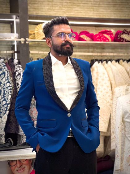 We specialize in creating designer suits and tuxedos with meticulous attention to detail and personalized fitting. Each piece features high-quality fabrics, textured lapels, and intricate embellishments, perfect for weddings and special occasions.