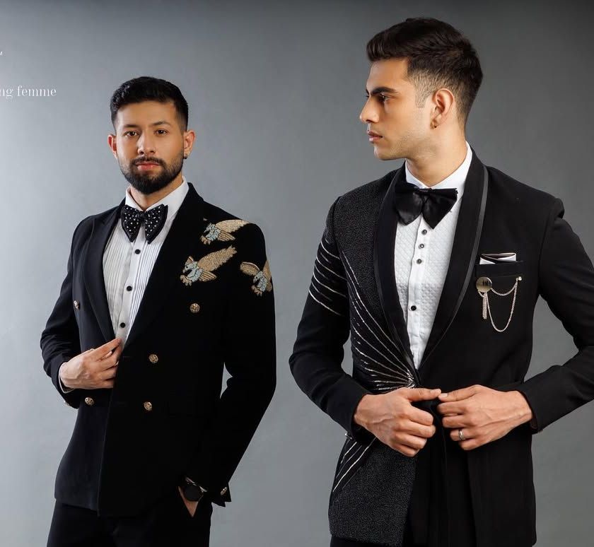 For receptions, cocktail parties, or any black-tie event, our bespoke tuxedos and suits are crafted for a perfect fit. We offer a range of styles, from classic shawl lapels to modern designs with unique embellishments and detailing.