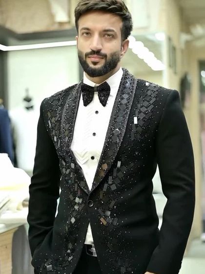 This is the first look into our world of bespoke men's fashion. We've selected these pieces to showcase the range of styles, impeccable craftsmanship, and regal elegance we bring to every wedding. From the groom's main event sherwani to a show-stopping reception tuxedo, this is where your dream wedding wardrobe begins.