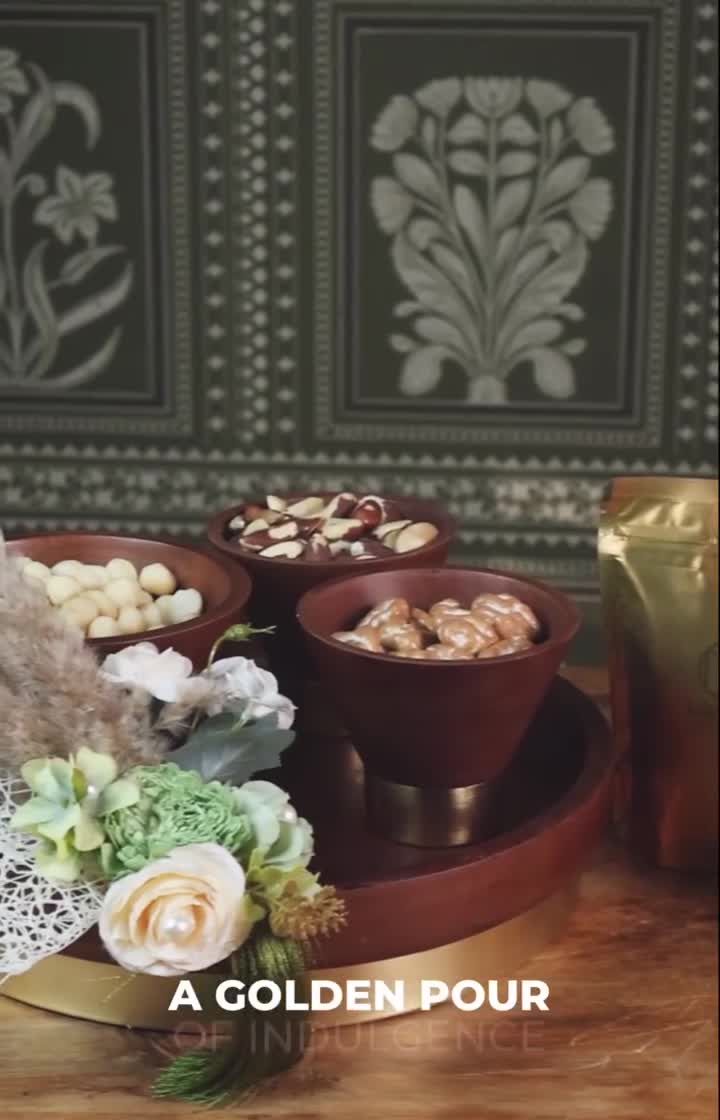 I curate hampers that are a feast for the senses. These gifts combine elegant serveware with gourmet treats like premium dry fruits and traditional mukhwaas, all presented with my signature artistry.