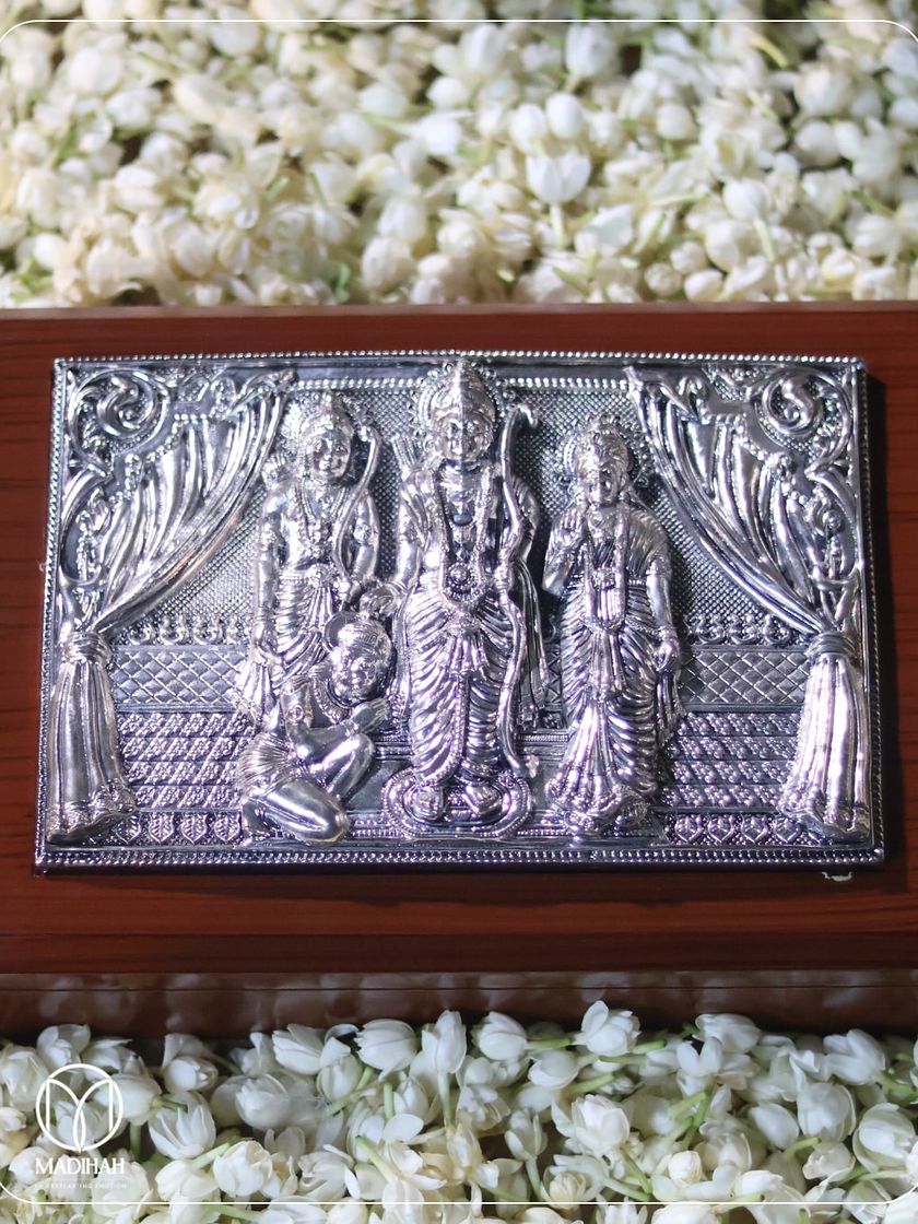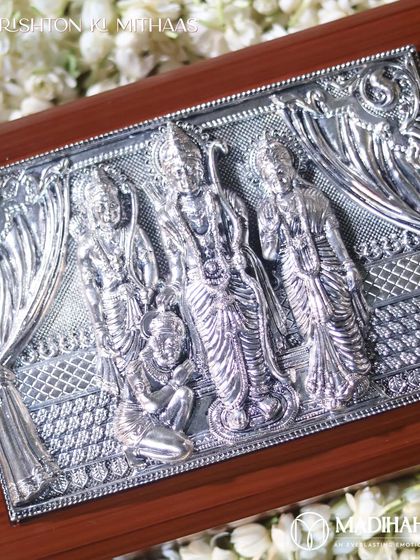 For auspicious occasions and moments of prayer, I create gifts that carry divine blessings. This collection includes finely crafted silver pooja thalis, sacred idols like the Ram Parivar, and other spiritual items, all presented in elegant hampers to honor your traditions with reverence and beauty.