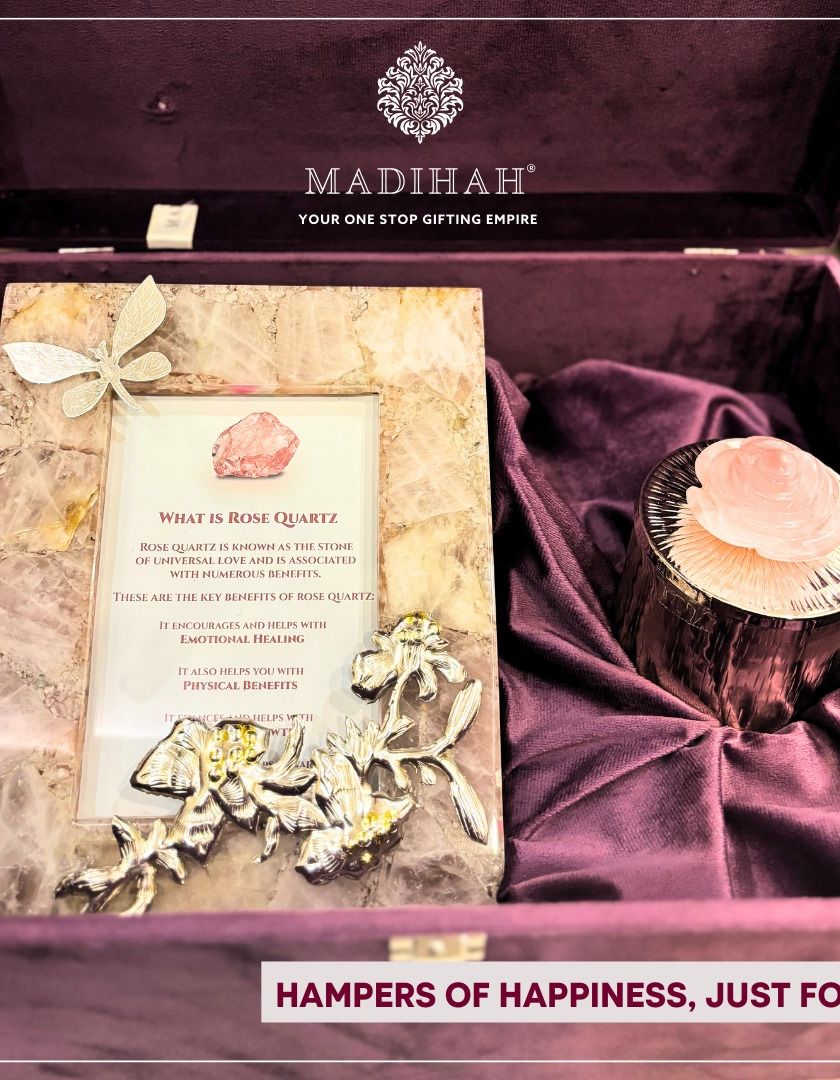 I believe the gift's packaging is as important as the gift itself. I use premium materials like rich velvets, handwoven baskets, and natural stones like Rose Quartz to create an unboxing experience that feels luxurious, personal, and truly unforgettable.