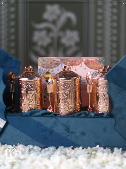 It's the little things that often hold the most meaning. This collection features our ornate mukhwaas jars, dry fruit boxes, and other small keepsakes. Inspired by Mughal designs and finished in gold, rose gold, or silver, these pieces are a fragrant gesture of gratitude and a nod to old-school charm.