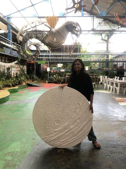 Hi, I’m Madhuri. I never liked those 'do not touch' signs in art galleries – so I make art you can play with. I’m self-taught, so rules? Nah, I prefer messy creativity. I use discarded stuff like cassette tapes, coffee grounds, cycle rims – turning junk into stories. Sometimes projects flop, sometimes they sing. I care about mental health too, making art a safe place for feelings. Painting bins with a friend, laughing, that’s my kind of magic.