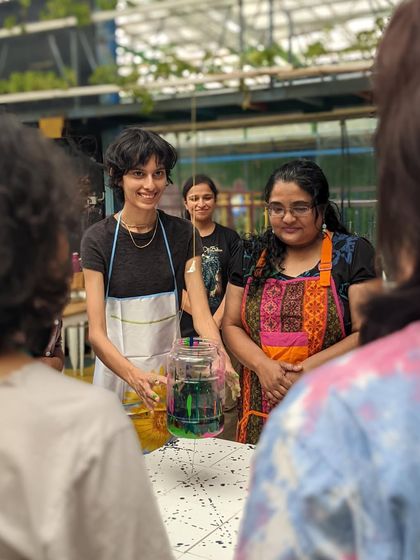 Shorter sessions (2-3 hours) at cafes, parks, and creative hubs around Bangalore. You’ll paint with coffee or wine, pour fluid art, upcycle waste, and get muddy with clay. It’s hands-on, earthy, and collective mural painting is a regular feature.