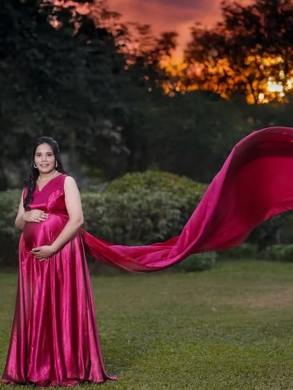 I use Mumbai's beautiful natural light and scenic spots to create romantic and dramatic maternity photos. This includes my signature sunset silhouette shots and sessions in lush green parks for a fresh, natural feel.