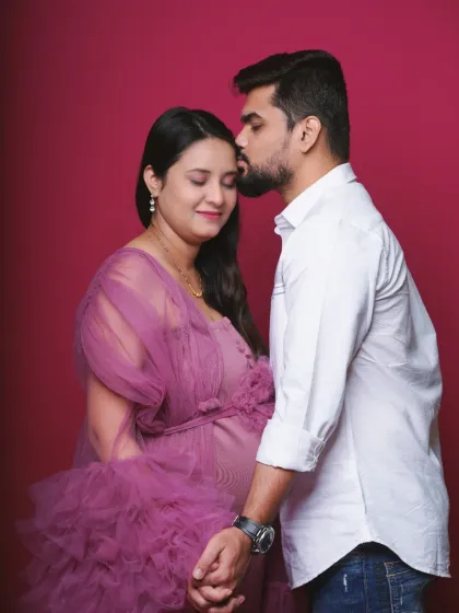 We specialize in capturing the beauty and anticipation of pregnancy through elegant maternity portraits. Our sessions focus on styled photography with careful attention to color contrasts and themes that celebrate this special phase.