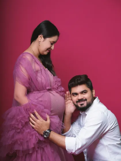 We create serene and intimate portraits using soft lighting techniques and themed setups. Our experience allows us to capture flattering angles while ensuring mother's comfort throughout the session.