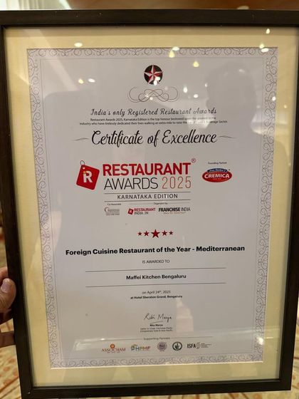 I’m Chef Ammar Molki, and Maffei Kitchen is my dream brought to life right here in Bangalore. I grew up loving the wild, rich flavors from home - you’ll find me happiest in a spice market, picking stories with every pinch. Maffei isn’t just a restaurant, it’s a slice of my Mediterranean heart. Awards are nice, but seeing you sip Turkish coffee or break baklava with friends? That’s what matters. We’re here to make memories, one table at a time.