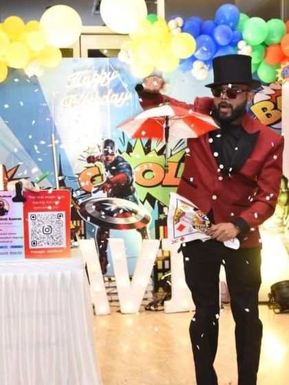 People say I'm a born magician, maybe they're right. Magic's in my blood, thanks to my dad - my guru. Winning 2nd place at IBM's International Magic Competition was wild, but honestly, nothing beats seeing kids light up. Unke chehre pe smile laana (bringing a smile to their faces), that's my real magic. My daughter Dhani's laughter is everything. I want every party to feel like that - pure happiness, fun, and memories, not just tricks.