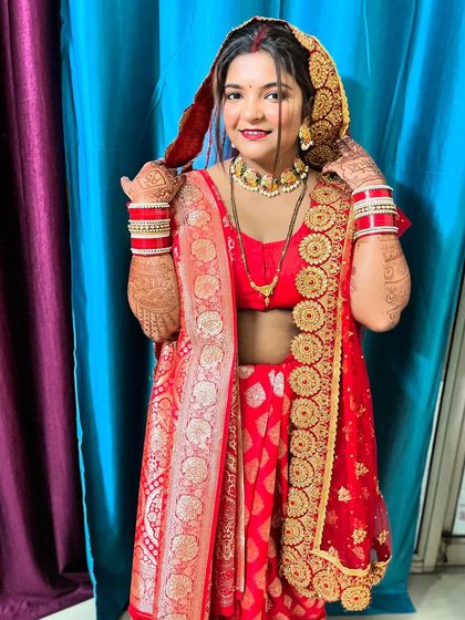 I know managing too many artists is stressful. That’s why I handle your complete bridal look. If you want traditional wedding makeup, elegant hairstyles (think gajra and classic buns), and saree or lehenga draping sorted in one go, I’m your person. I’ve got loads of experience with heavy outfits and tricky pleats - poora look, zero stress.