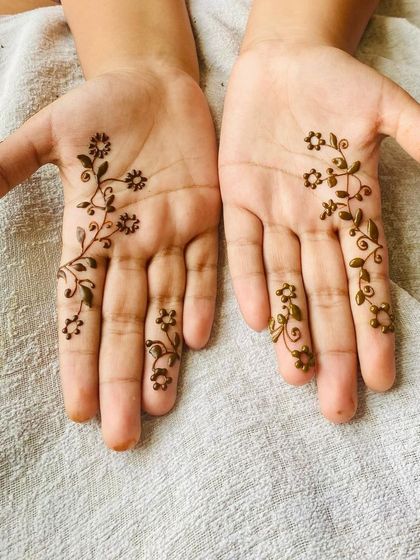 Hi, we’re Magic Stains. Mehndi isn’t just a pattern for us, it’s a whole vibe. Festivals like Karvachauth, Teej, Rakhi - each one has its own sparkle, and we try to bring that out in every swirl. Our favourite part? Catching those happy faces when the stain turns deep and rich. We even do our own makeup and saree draping for tyohar (festivals). Mehndi is our way to celebrate, every single time.