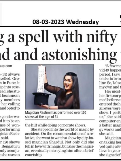 Hi, I’m Rashmi. Pune ki ladki (girl from Pune), engineer by degree, magician by destiny! Coding never made sense to me, but magic did. Fell in love with magic—and the magician—Shardul, who’s now my partner in life. My engineering brain helps me add tech twists to my tricks. Being a female magician? Log hairan ho jaate hain (people get surprised), but I enjoy it! Started online shows during Covid, just to spread smiles. Magic is believing, and I’m all in.