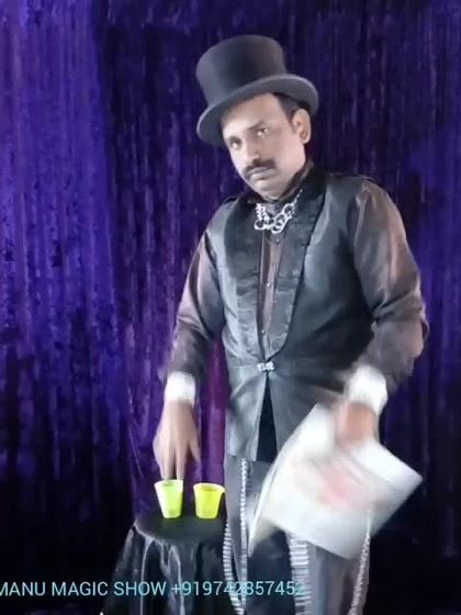 I perform traditional magic shows wearing classic magician attire including a top hat and black coat. My performances feature colorful props like fans, scarves, and magic wands to create visual illusions that captivate young audiences.