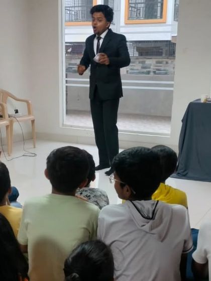 I perform interactive magic at corporate events, adapting my show for conferences, mixers, or family days, and include everyone with English, Kannada, and Tamil.