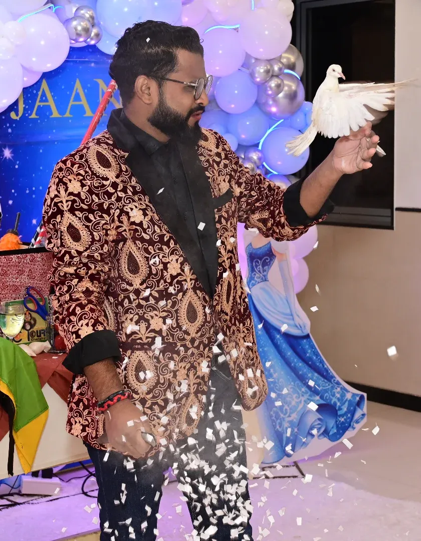 Experience the wonder of classic stage magic with a modern twist. My act includes breathtaking illusions like making doves appear from thin air, safely playing with fire, and transforming everyday objects right before your eyes.