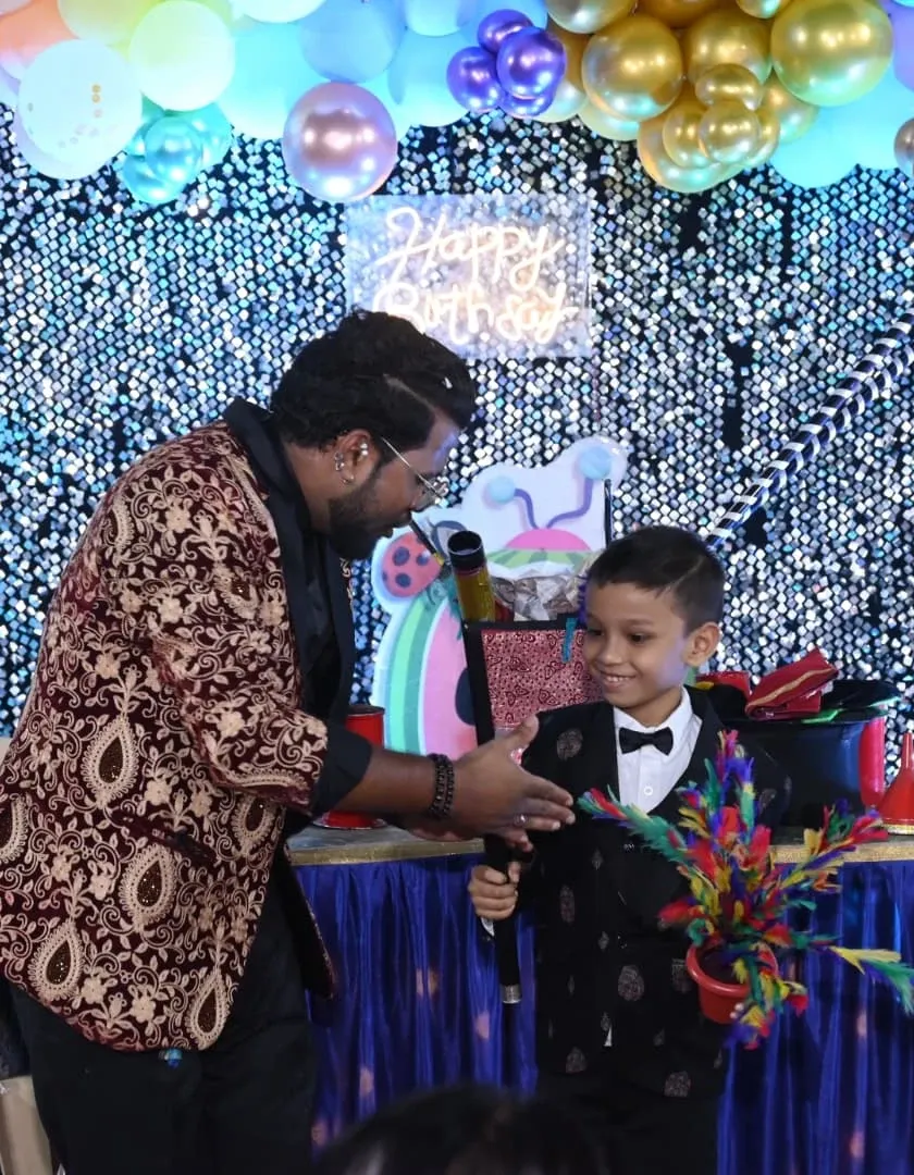 My magic is perfect for any event, not just birthdays. I have extensive experience performing at large-scale society functions, festive celebrations like Ganesh Utsav and Diwali, and professional corporate events.