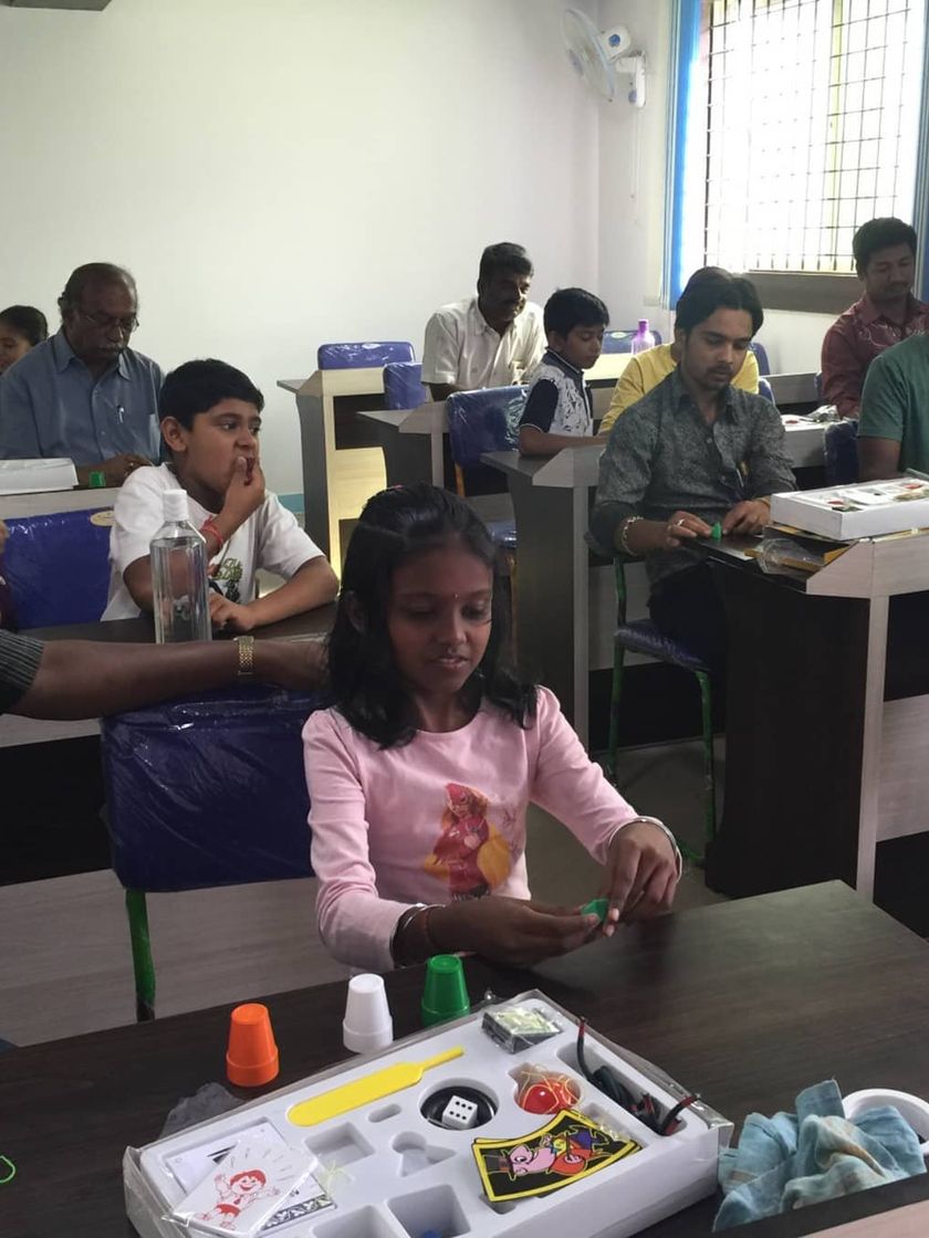 My workshops are all about doing, not just watching. You get your own magic kit and I guide you step-by-step as you practice each trick in a fun, classroom setting. We use props like cards, cups, and balls to make the jaadu happen.